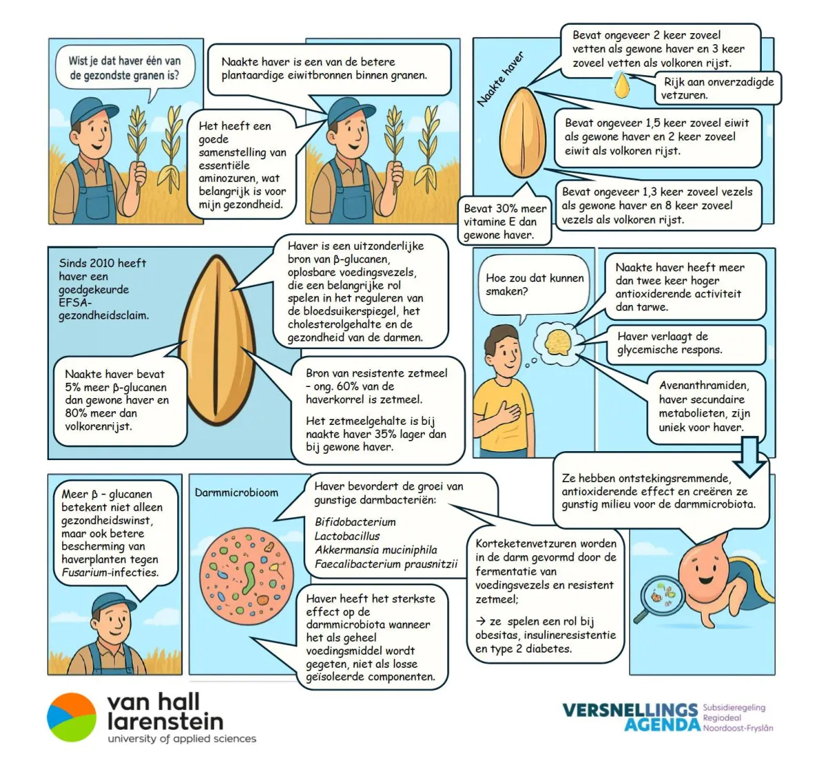 Naakte haver is meer dan een smaakvol en voedzaam graan. Het is een gewas dat op meerdere manieren bijdraagt aan onze gezondheid. Martina Sura-de Jong, lector Eiwittransitie, en haar collega Gertjan Klijnstra van Hogeschool Van Hall Larenstein onderzochten in de literatuur de voedingsstoffen en unieke eigenschappen van naakte haver. Hun onderzoek laat zien hoe het graan ons lichaam kan ondersteunen en verrijken. In ons kookboek vind je een korte weergave van dit onderzoek. Hieronder kun je het gehele onderzoek downloaden en lezen.